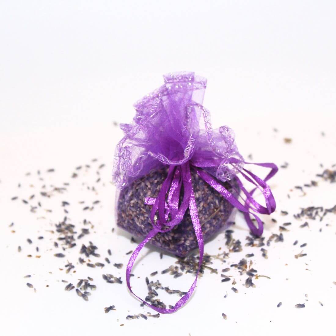 Illatos levendula virággal töltött organza zsákocska. Hosszan tartó illatot biztosít a lakásban, ruhás szekrénybe, de akár ajándékba is adható.