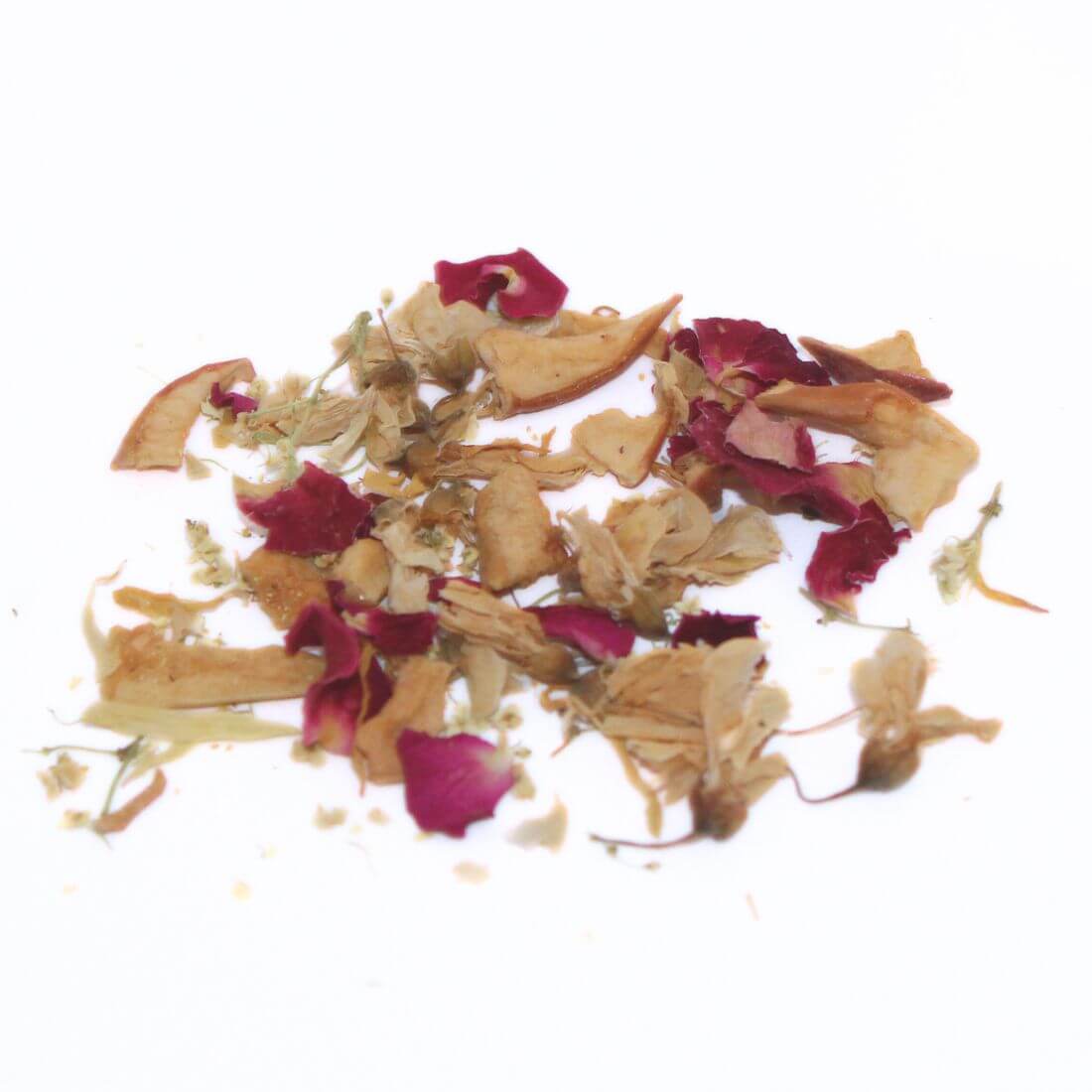 Ez a tea ötvözi az akácvirág könnyed virágos ízét, a romantikus rózsaszirom finom jegyeit, a körömvirág gyógyító tulajdonságait, a bodza élénkítő hatását és az édes-savanykás szárított alma frissességét.